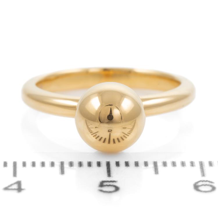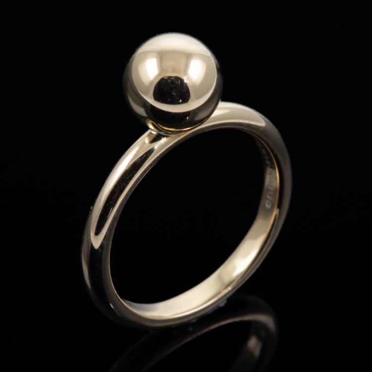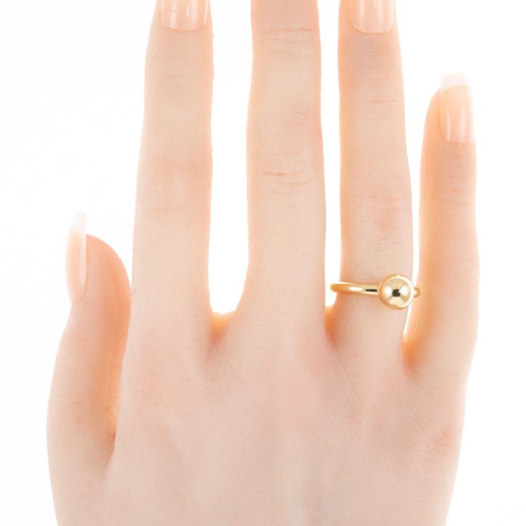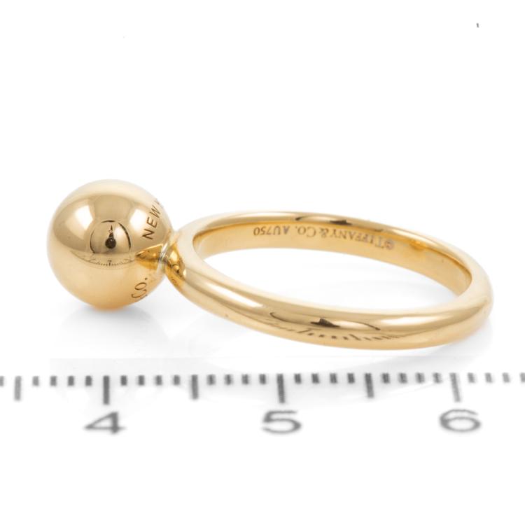Tiffany & Co. Hardware Ball ring. 18ct yellow gold. Ball diameter: 7.6mm. Ring size K, - ring resizing is not recommended. Band width: 2.5mm. Weight: 4.4g. (Pre-owned)