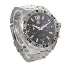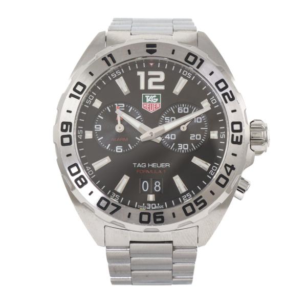 TAG Heuer Formula 1 Date stainless steel quartz watch. Black dial, date, small seconds, subdial alarm, case diameter: 41mm, wrist size: 17cm, Swiss made. Ref# WAZ111A. With TAG Heuer stainless steel bracelet and clasp. With Certificate of Authenticity and TAG Heuer case. No warranty provided. (Pre-owned)