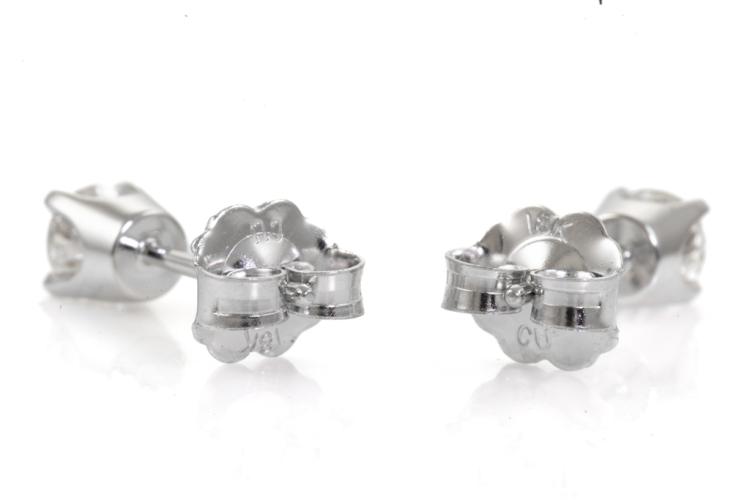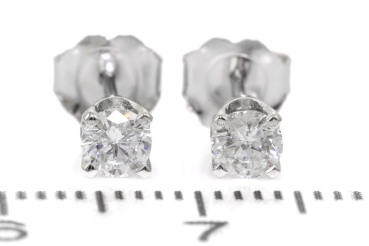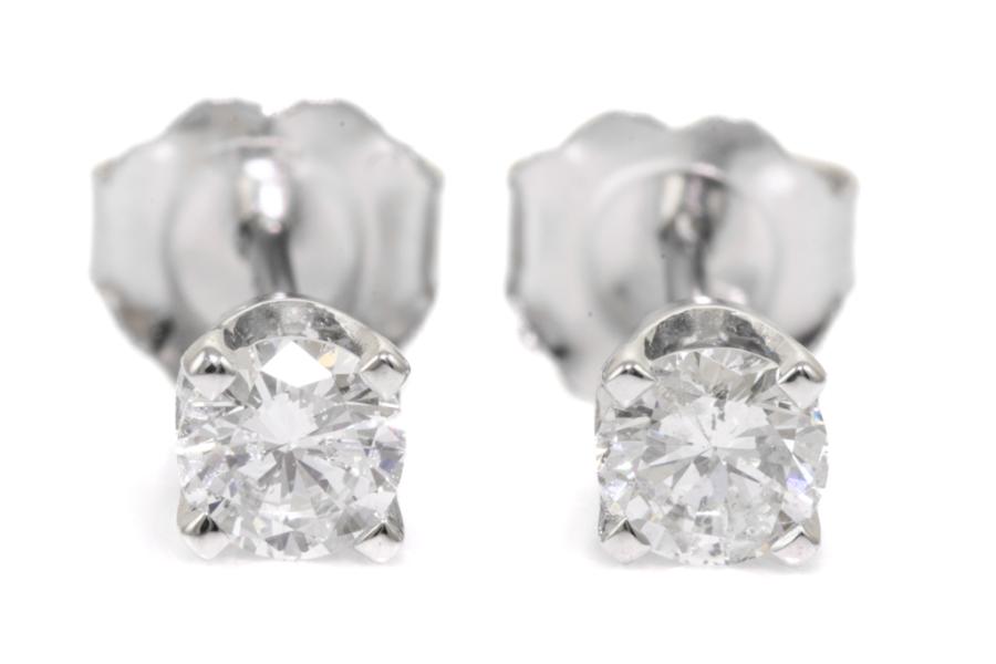 Diamond stud earrings with 2 round natural Diamonds totalling 0.37cts (Estimated grading: G P1). 18ct white gold. Weight: 1.0g. (New)^