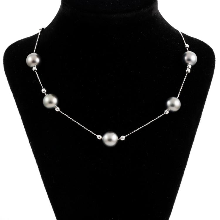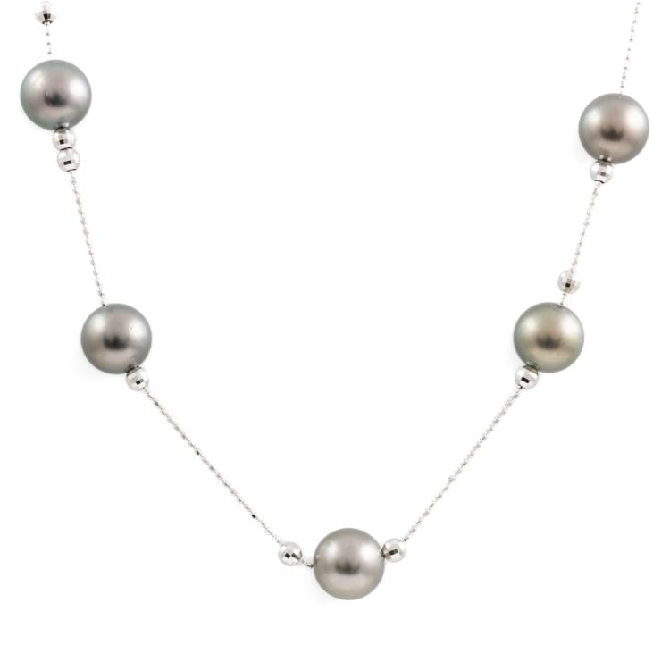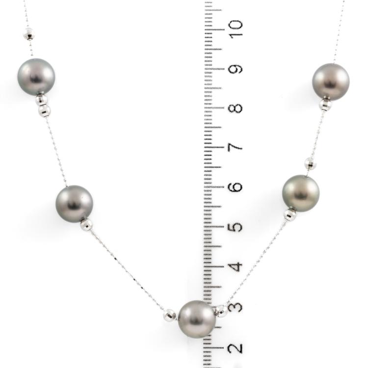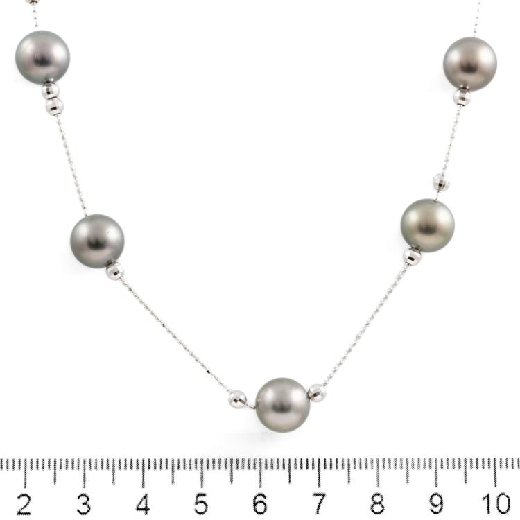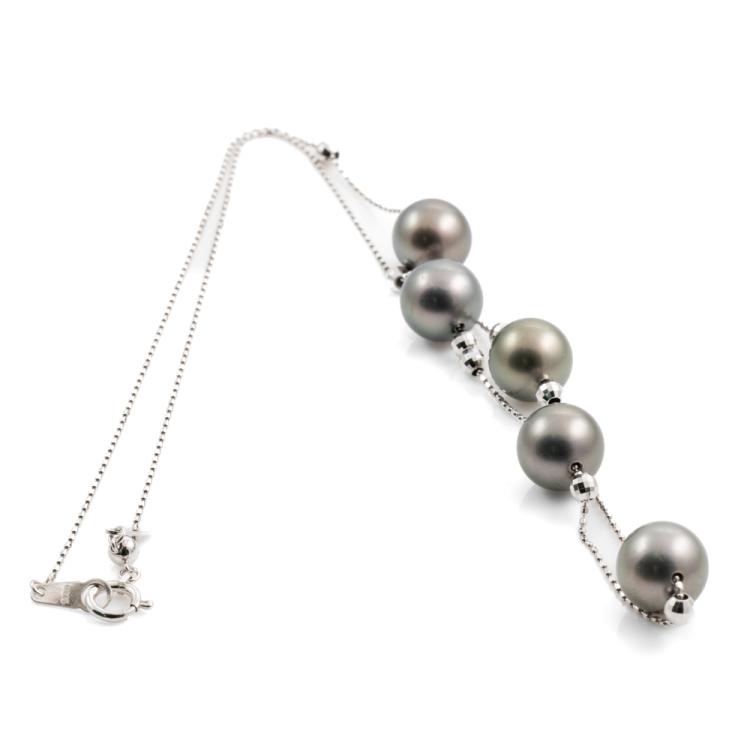 Tahitian Pearl necklace with 5 Tahitian Pearls of 9.3-9.4mm. 18ct white gold. Adjustable Length: max 44.0cm. Weight: 7.8g. (Pre-owned)^