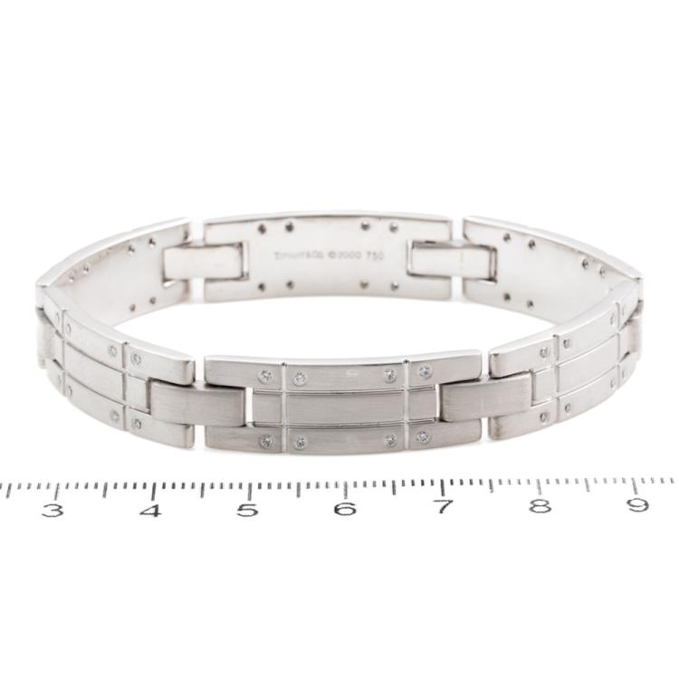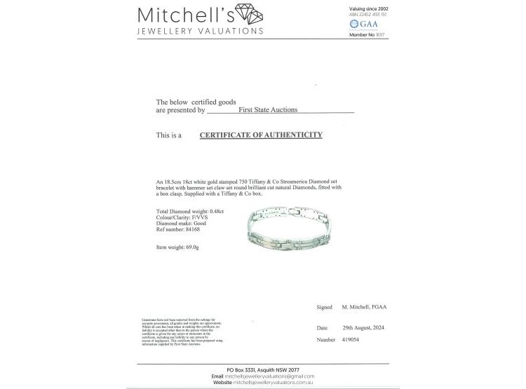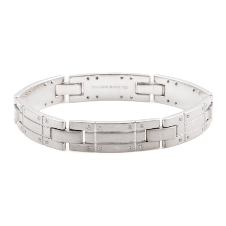 Tiffany & Co. Streamerica Diamond Link Bracelet with round Natural Diamonds totalling 0.48ct (Estimated grading F VVS). 18ct white gold. Length: 18.5cm. Width: 10.3mm. Weight: 69.0g. With Tiffany & Co. box. With Certificate #419054 (Pre-owned)